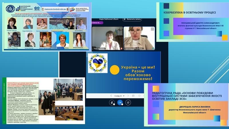 2 травня 2024 р. у Центральному інституті післядипломної освіти ДЗВО «Університет менеджменту освіти» (директор Тамара СОРОЧАН, доктор педагогічних наук, професор) захистом випускних робіт слухачів успішно завершено тематичні курси підвищення кваліфікації «Розвиток лідерської компетентності педагогічних працівників та керівників закладів освіти в умовах невизначеності (на базі Вознесенської гімназії імені Тараса Шевченка)»,які відбувалися з 12 лютого 2024 р. за двоетапною моделлю. Науково-організаційний супровід курсів для групи керівників та педагогічних працівників закладів загальної середньої, дошкільної, позашкільної освіти м. Вознесенськ Миколаївської області, м. Коростишів Житомирської області та керівників і педагогічних працівників центрів педагогічного супроводу, роботи з обдарованими дітьми, національно-патріотичного виховання та спортивної роботи, психологічної служби відділу освіти Бучанської міської ради Київської області, здійснювала кафедра менеджменту освіти та права ЦІПО (завідувач Олена КРАВЧЕНКО, доктор педагогічних наук, професор; куратор-тьютор групи Надія ЛЮБЧЕНКО, професор кафедри, кандидат педагогічних наук, доцент).