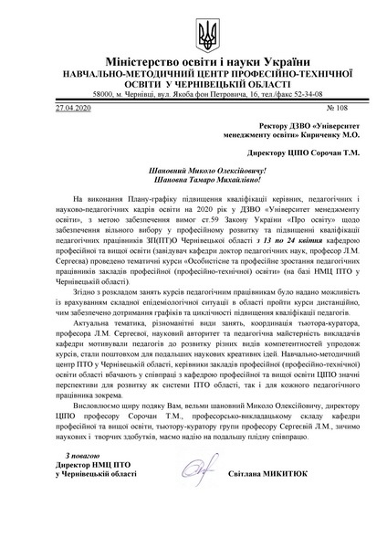 Свою діяльність науково-педагогічні працівники кафедри спрямовують на: задоволення освітніх та професійних потреб особистості; сприяння професійному розвитку і самовдосконаленню слухачів згідно із вимогами ринку праці; забезпечення відповідності кваліфікації слухачів викликам інформаційного суспільства та цифровізації виробництва; реформування системи національної освіти. А також сприяє підвищенню освітнього і культурного рівня людини, трансформації професійного розвитку педагогічних і науково-педагогічних працівників в умовах відкритої освіти.