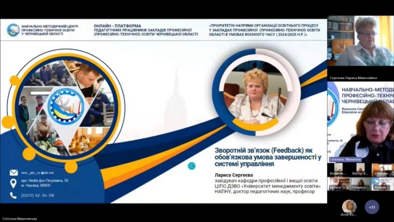 На запрошення Навчально-методичного центру професійно-технічної освіти у Чернівецькій області (директор Світлана МИКИТЮК) науково-педагогічні працівники кафедри професійної і вищої освіти ЦІПО у повному складі взяли участь пленарному засіданні «Науковий супровід освітнього процесу в ЗП(ПТ)О».