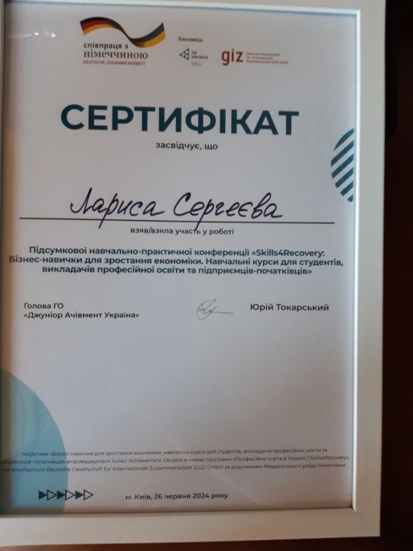 26.06.2024 р. у місті Києві відбулась підсумкова конференція «Skills4Recovery: Бізнес-навички для зростання економіки. Навчальні курси для студентів, викладачів професійної освіти та підприємців-початківців».