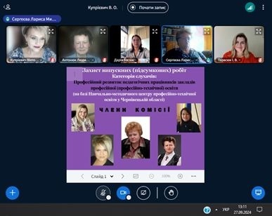 Підсумком проходження курсів підвищення кваліфікації стали публічні онлайн захисти випускних (підсумкових) робіт. Під час захисту слухачі презентували результати своєї роботи, активно обговорювали питання сучасного професійного розвитку викладача, ділились досвідом організації дистанційного навчання в умовах військового стану.