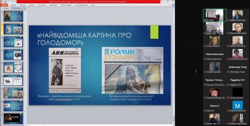20.11.2024 р. науково-педагогічні працівники кафедри професійної і вищої освіти ЦІПО професор Лариса Сергеєва, доценти Андрій Єрмоленко та Вікторія Купрієвич взяли участь у зустрічі з кандидатом історичних наук, провідним науковим співробітником Національного музею Голодомору-геноциду Андрієм Іванцем до Дня пам'яті жертв Голодомору. Лекція на тему: «Митець і воїн Віктор Цимбал – «людина-правди» вразила новими історичними фактами.