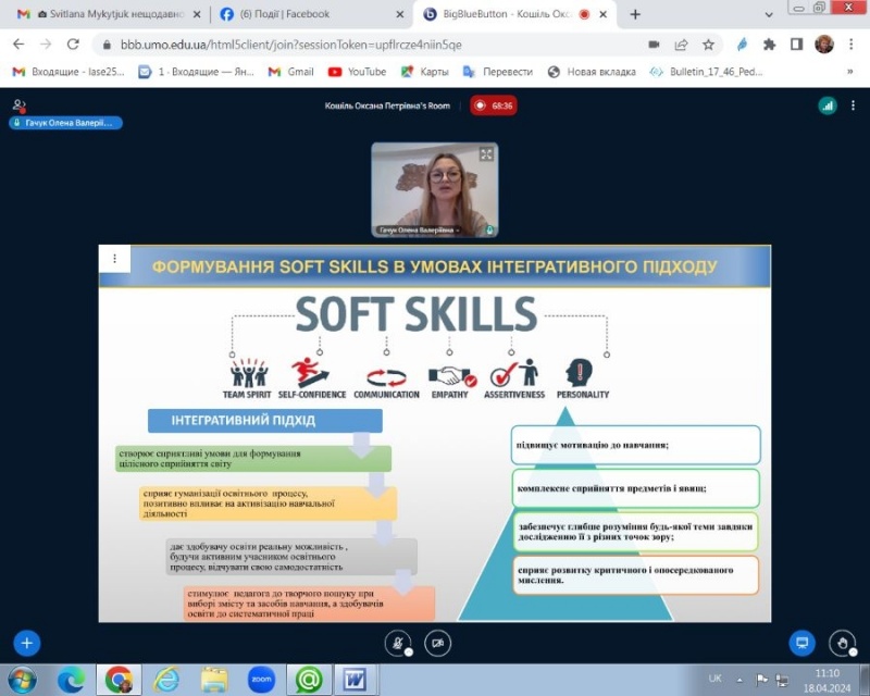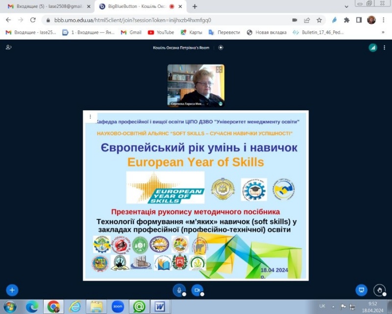 18.04.2024 р. на кафедрі професійної і вищої освіти ЦІПО (завідувач кафедри доктор педагогічних наук, професор Лариса СЕРГЕЄВА) відбулась онлайн презентація рукопису методичного посібника «Технологія формування «м’яких» навичок (soft skills) у ЗП(ПТ)О».
