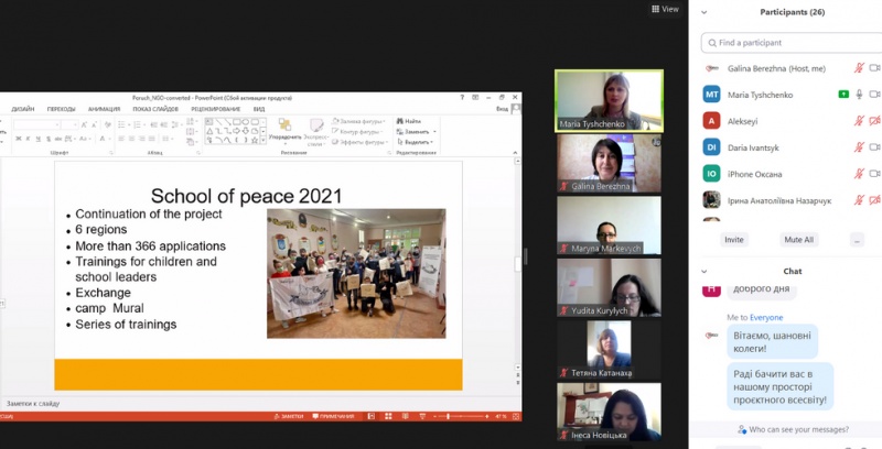 Пані Марія наголосила на важливості проактивної позиції та власної ініціативи громадської організації як у формуванні проєктів, так і пошуку партнерів та ресурсів для їх реалізації. Так, вона зазначила, що на певному етапі вони з командою зрозуміли, що потрібно інвестувати час і зусилля в молодь, тому що саме молоді хлопці та дівчата стають тією рушійною силою змін, яких так потребує наша країна. Таке бачення втілюється як через реалізацію власних проєктів (наприклад, проєкт «Школа миру»), так і через залучення до міжнародних програм та проєктів (наприклад, супровід громад-учасниць Швейцарсько-українського проєкту DECIDE – «Децентралізація для розвитку демократичної освіти» в частині підготовки 16 громад до впровадження в них шкільного громадського бюджету та проведення першого конкурсу шкільних проєктів).