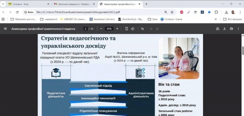 На кафедрі триває активна підготовка майбутніх лідерів освіти у межах освітньої програми «УПРАВЛІННЯ НАВЧАЛЬНИМ ЗАКЛАДОМ» (гарант - проф.Т. А.МАХИНЯ). Однією із ключових дисциплін програми є нормативний курс «КЕРІВНИК ЗАКЛАДУ ОСВІТИ» (викладач - професор Г.М.ТИМОШКО), у межах якого здобувачі отримали практичне завдання – розробити акмеограму професійної діяльності керівника закладу освіти.
