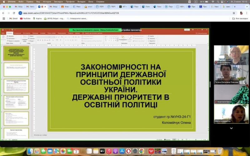 Сесія розпочалась із вітальних побажань здобувачам мирного неба, впевненості у власних силах та організаційних настанов від завідувачки кафедри, доктора педагогічних наук, професора Ганни Юріївни КРАВЧЕНКО та гаранта програми, професора кафедри, кандидата педагогічних наук, професора Тетяни Анатоліївни МАХИНІ