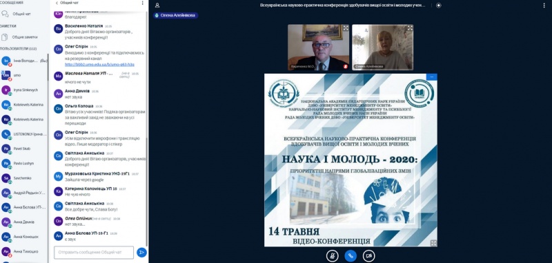 14 травня 2020 року у Державному закладі вищої освіти «Університет менеджменту освіти» НАПН України відбулася Всеукраїнська науково-практична конференція здобувачів вищої освіти і молодих учених «Наука і молодь - 2020: пріоритетні напрями глобалізаційних змін», яка проходила цього року в новому форматі відеоконференції - режимі on-line.