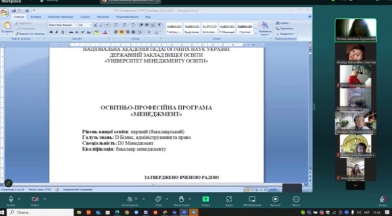 02 травня 2025 р. у Державному закладі вищої освіти «Університет менеджменту освіти» НАПН України (ДЗВО «УМО») на кафедрі економіки, підприємництва та менеджменту відбулось розширене засідання проектних груп з обговорення проєктів освітньо-професійних програм «Управління персоналом та економіка праці», «Менеджмент організацій та адміністрування (за видами економічної діяльності)», «Бізнес-адміністрування», «Підприємництво» бакалаврського та магістерського рівнів вищої освіти.