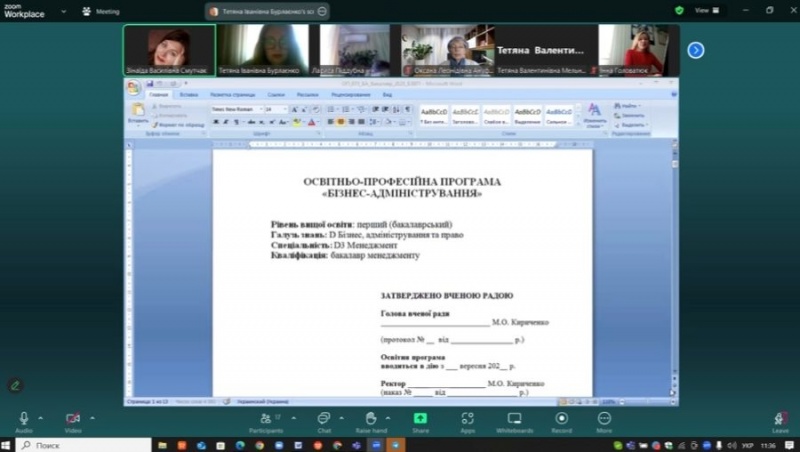 В обговоренні взяли участь члени проєктних груп: кандидат педагогічних наук, доцент, доцент кафедри економіки, підприємництва та менеджменту Ольга Постоєва; кандидат економічних наук, доцент, доцент кафедри економіки, підприємництва та менеджменту Лариса Піддубна; кандидат економічних наук, доцент, доцент кафедри економіки, підприємництва та менеджменту Олександр Мурашко; кандидат філософських наук, доцент, доцент кафедри економіки, підприємництва та менеджменту Тетяна Ріктор; кандидат педагогічних наук, доцент, доцент кафедри економіки, підприємництва та менеджменту Оксана Ануфрієва. Активно долучилися до роботи проєктної групи: доктор економічних наук, професор, професор кафедри економіки, підприємництва та менеджменту ДЗВО «УМО» Валентина Іванова; доктор економічних наук, професор, професор кафедри економіки, підприємництва та менеджменту ДЗВО «УМО» Зінаїда Смутчак, завідувачкакафедри економіки, підприємництва та менеджменту ДЗВО «УМО»Тетяна Бурлаєнко.