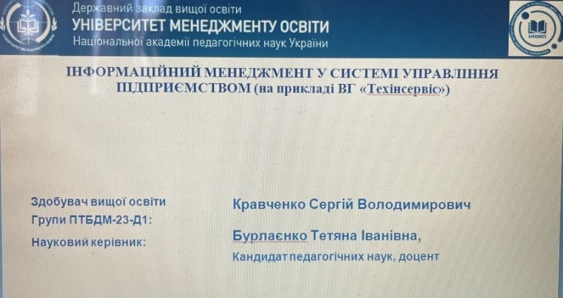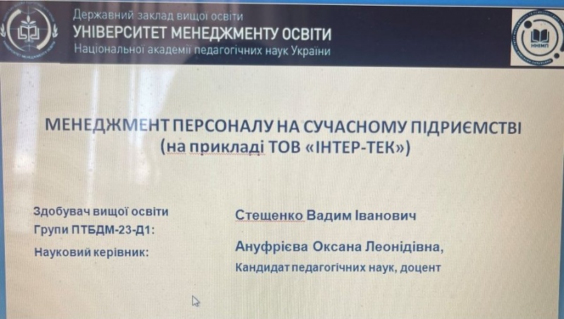 19 лютого 2025 р. у Навчально-науковому інституті менеджменту та психології ДЗВО «Університет менеджменту освіти» на кафедрі економіки, підприємництва та менеджменту відбувся успішний захист кваліфікаційних випускових робіт здобувачів вищої освіти спеціальності 076 – підприємство та торгівля, Освітня програма: Підприємництво торгівля та біржова діяльність (Група ПТБДМ-23Д1).