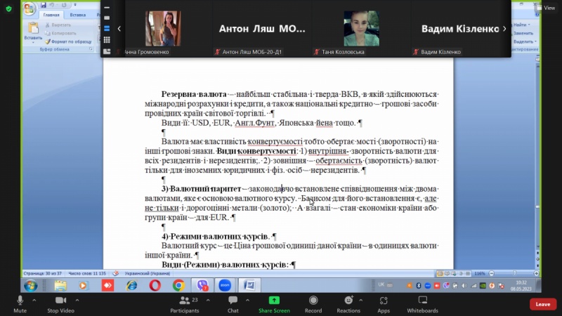 В межах дисципліни «Міжнародні економічні відносини» 8 травня 2023 року доцентом кафедри економіки, підприємництва та менеджменту ННІМП ДЗВО «УМО», к.е.н., доц. Мурашко Олександром Васильовичем було проведене відкрите лекційне заняття на тему «Світова валютна система».
