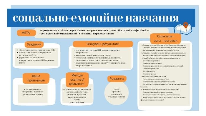 - отримали практичний досвід формування освітньої компоненти з соціально-емоційного навчання.