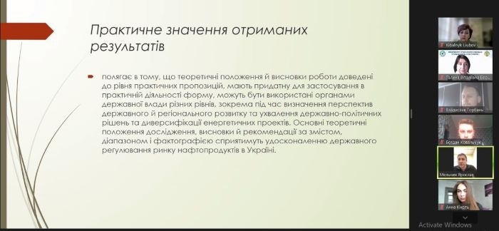 Незважаючи на воєнний стан у країні, технічні складнощі, захист відбувся на високому науково-професійному рівні з дотриманням академічної доброчесності, нормативних та безпекових вимог. На початку державної атестації здобувачів вищої освіти вітали: голова комісії – учений секретар Університету, в.о. завідувача, професор кафедри моделювання економіки і бізнесу Черкаського національного університету імені Богдана Хмельницького Любов КІБАЛЬНИК, доктор економічних наук, професор, та завідувач кафедри публічного управління і проектного менеджменту ННІМП ДЗВО «Університет менеджменту освіти» Володимир МОРОЗ, кандидат наук з державного управління, доцент.