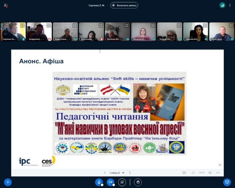 08.10.2025 р. доктор педагогічних наук, професор Лариса Сергеєва провела заняття зі слухачами курсів підвищення кваліфікації. Такі зустрічі – це завжди непересічна подія. Саме тема навчальної зустрічі так і називається : «Івент-менеджмент в управління розвитком закладу освіти.»