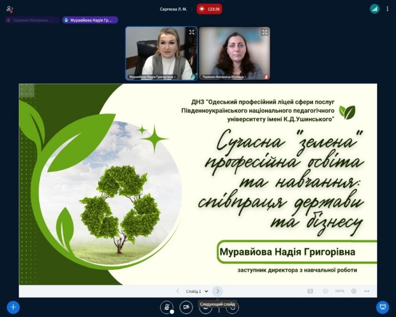 Відбулась цікава, насичена розмова зацікавлених педагогів у вирішенні проблем формування готовності педагогічного персоналу закладів освіти до формування «зелених» навичок (green skills) в освітньому середовищі закладу освіти, шляхом розроблення і впровадження концепції, моделі й методики їхньої підготовки до цієї діяльності.