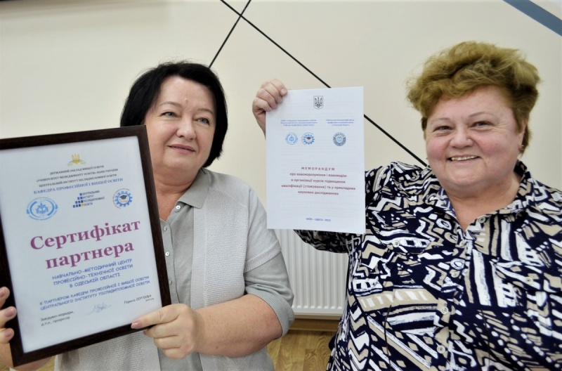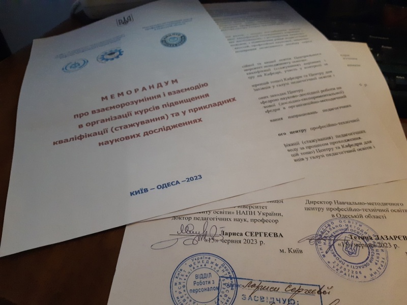 15 червня 2023 року між кафедрою професійної і вищої освіти Центрального інституту післядипломної освіти ДЗВО «Університет менеджменту освіти» НАПН України та Навчально-методичним центром професійно-технічної освіти в Одеській області підписано меморандум про взаєморозуміння і взаємодію в організації курсів підвищення кваліфікації (стажування) керівних і педагогічних кадрів та у прикладних наукових дослідженнях.