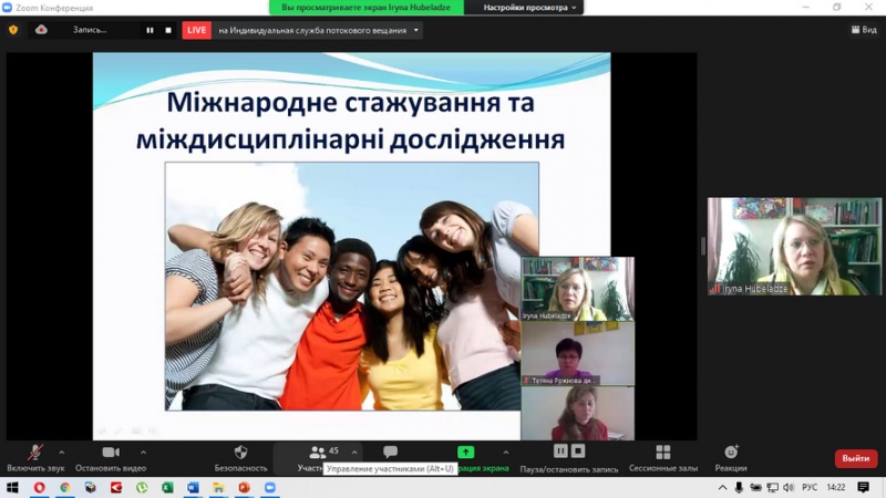 Для обговорення була запропонована тема «Інтернаціоналізація закладів вищої освіти як засіб інтеграції у світовий науковий та Європейський дослідницький простір», яку у своєму виступі висвітлила Олена Острянська, доцентка відділу наукової роботи УМО, кандидатка педагогічних наук, доцентка.