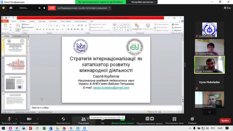На високому професійному рівні була висвітлена тема доповіді доктора філософських наук, старшого наукового співробітника, радника Президії НАПН України Сергія Курбатова «Стратегія інтернаціоналізації як каталізатор міжнародного співробітництва сучасного університету».
