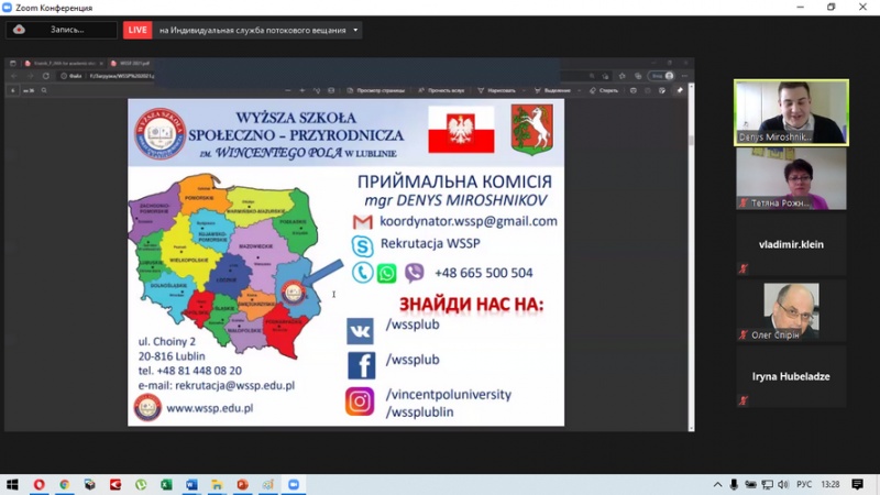 На засіданні круглого столу було презентовано також спільний виступ Дениса Мірошникова, уповноваженої особи ректора Вищої школи суспільно-природничих наук імені Вінсента Поля в Любліні (Республіка Польща) з питань Східного партнерстватаОксани Дубініної, доцентки кафедри публічного управління і проєктного менеджменту ННІМП УМО, кандидатки педагогічних наук, доцентки з теми: «Упровадження освітніх проєктів у країнах ЄС - досвід Вищої школи суспільно-природничих наук імені Вінсента Поля в Любліні, Республіка Польща».