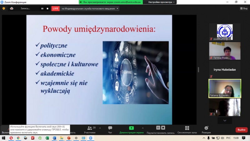 Цікавим виявився спільно підготовлений виступ Маріолою Міровською, уповноважено особою ректора Університету імені Яна Длугоша в м. Ченстохова (Республіка Польща) з питань роботи з людьми з інвалідністю, докторкою педагогічних наук, професоркою та Тетяною Бурлаєнко, завідувачкою кафедри економіки, підприємництва та менеджменту ННІМП УМО, кандидаткою педагогічних наук, доценткою з теми: «Перспективні напрями інтернаціоналізації в Університеті імені Яна Длугоша в м. Ченстохова, Республіка Польща)».