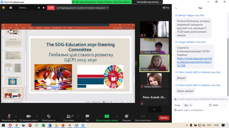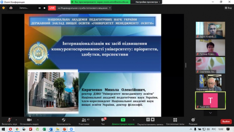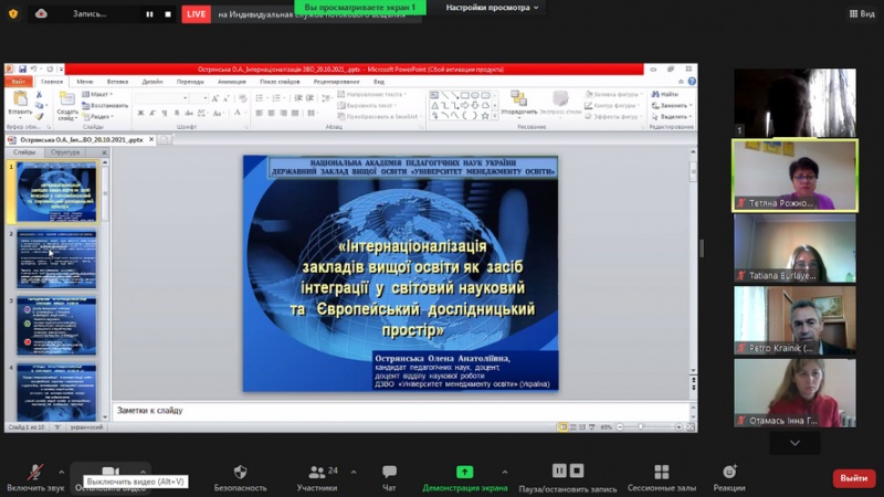 20 жовтня 2021 року Навчально-науковим інститутом менеджменту та психології ДЗВО «Університет менеджменту освіти НАПН України було проведено засідання круглого столу «Інтернаціоналізація вищої освіти: виклики, досягнення, перспективи», у рамках ХІІІ Міжнародної виставки «Інноватика в сучасній освіті – 2021».
