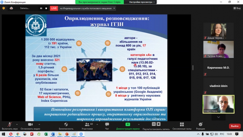 Виступ проректора з наукової роботи та цифровізації УМО, доктора педагогічних наук, професора, члена-кореспондента НАПН України, заслуженого діяча науки і техніки України Олега Спіріна «Електронні відкриті системи як інструмент інтернаціоналізації педагогічних досліджень: пошук джерел та впровадження результатів» викликав неабияку зацікавленість в учасників заходу.