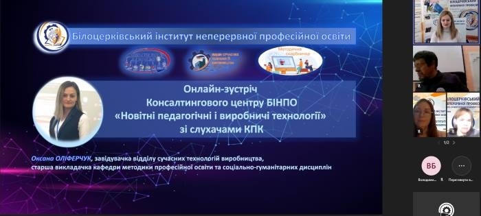 У БІНПО ВІДБУЛАСЬ ОНЛАЙН-ЗУСТРІЧ КОНСАЛТИНГОВОГО ЦЕНТРУ «НОВІТНІ ПЕДАГОГІЧНІ Й ВИРОБНИЧІ ТЕХНОЛОГІЇ» З ПЕДАГОГАМИ ЗП(ПТ)О
