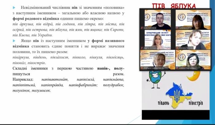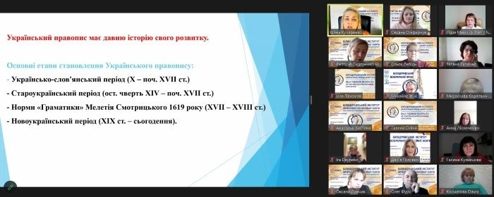 Активну участь у семінарі взяла Вікторія Сидоренко, докторка педагогічних наук, професорка, директорка БІНПО, і у своїй доповіді наголосила на важливості та значущості дотримання лексичних, орфографічних, акцентуаційних, пунктуаційних норм сучасної української літературної мови.