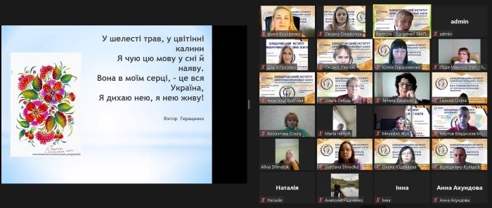 Вікторія Сидоренко, директорка БІНПО, докторка педагогічних наук, професорка, звернулася із вступним словом до учасників заходу і привітала всіх, хто у різні роки був і є частиною колективу БІНПО. Вікторія Вікторівна зазначила, що українська мова є стрижнем національної культурно-історичної традиції, виявом соборності українців і потужним засобом незламності української нації у буремні часи сьогодення.