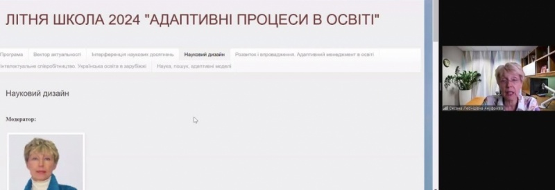 05–06 липня 2024 року за ініціативою ГО «Школа адаптивногоуправління соціально-педагогічними системами», ДЗВО «Університетменеджменту освіти» НАПН України та Навчально-наукового інституту«Українська інженерно-педагогічна академія» ХНУ імені В.Н. Каразіна відбувся потужний науковий online-захід: П’ята міжнародна літня наукова online-школа «адаптивні процеси в освіті», метою якого було поєднання зусиль науковців, здобувачів наукових ступенів тароботу різних наукових шкіл України і зарубіжжя.