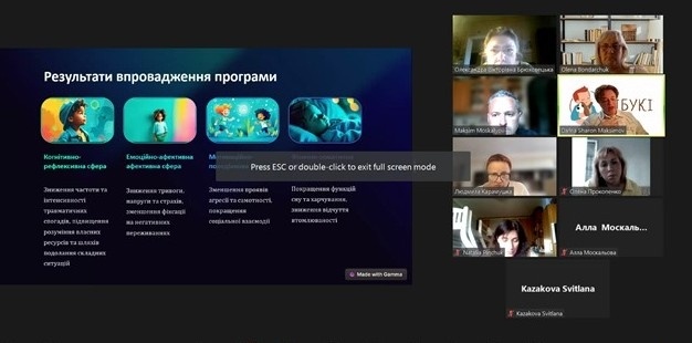 Обговорюючи доповідь дисертантки, учасники семінару відзначили її високий науковий рівень і вражаюче за своїми масштабами та якістю практичне впровадження результатів – ту психологічну допомогу й підтримку, що було надано тисячам українських дітей, які потерпають від наслідків війни в нашій країні.