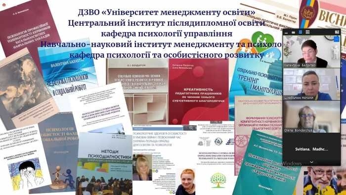 З вітальними словами виступили: Тамара Сорочан, директор Центрального інституту післядипломної освіти ДЗВО «УМО», доктор педагогічних наук, професор; В'ячеслав Супрун, директор Навчально-наукового інституту менеджменту та психології ДЗВО «УМО», кандидат економічних наук, доцент; Людмила Карамушка, заступник директора з науково-організаційної роботи та міжнародних наукових зв’язків Інституту психології імені Г.С. Костюка НАПН України , професор кафедри психології управління ЦІПО ДЗВО «УМО», доктор психологічних наук, професор, дійсний член НАПН України; Олена Бондарчук, завідувач кафедри психології управління ЦІПО ДЗВО «УМО», доктор психологічних наук, професор.