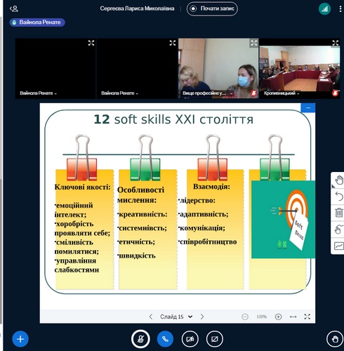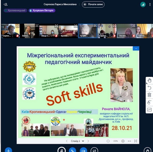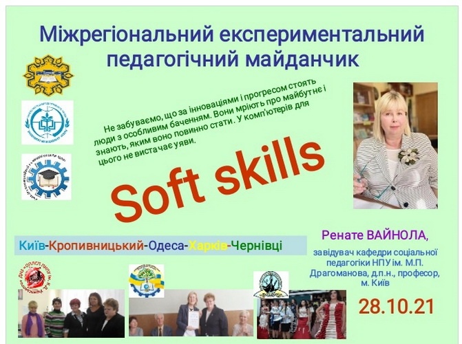 28 жовтня 2021 року відбувся міжрегіональний вебінар за програмою експериментального педагогічного майданчика «Формування мяких навичок («softskills») майбутніх кваліфікованих робітників в освітньому середовищі закладу професійної (професійно-технічної) освіти» (науковий керівник – кандидат педагогічних наук, доцент Інна Краснощок, наукові консультанти – доктор педагогічних наук, професор Лариса Сергеєва та кандидат педагогічних наук, доцент Вікторія Купрієвич).