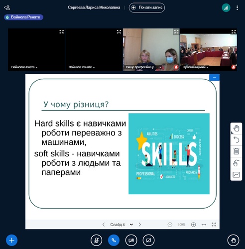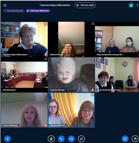 Учасників вебінару привітала Олена Сокоренко, начальник відділу професійно-технічної, фахової передвищої, вищої освіти та кадрового забезпечення департаменту освіти і науки облдержадміністрації, кандидат педагогічних наук; Алла Шолудько, директор Навчально-методичного кабінету професійно-технічної освіти у Кіровоградській області; Світлана Микитюк,директор Навчально-методичного центру професійно-технічної освіти у Чернівецькій області, м. Чернівці; Лариса Кашуба, заступник директора Навчально-методичного центру професійно-технічної освіти в Одеській області; Наталія Сологуб, заступник директора Науково-методичного центру професійно-технічної освіти у Харківській області.