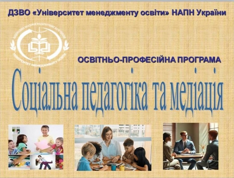 УНІВЕРСИТЕТ МЕНЕДЖМЕНТУ ОСВІТИ ЗАПРОШУЄ НА НАВЧАННЯ ЗА ПРОГРАМОЮ СОЦІАЛЬНА ПЕДАГОГІКА ТА МЕДІАЦІЯ