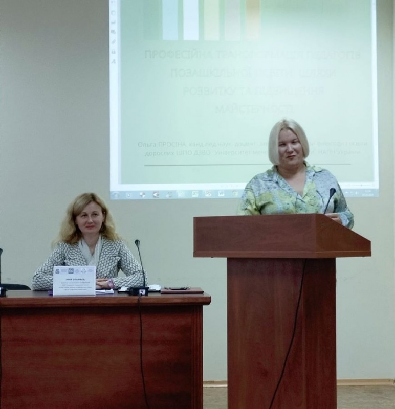 10 жовтня 2024 року на базі ДЗВО «Університет менеджменту освіти» НАПН України відбувся мотиваційно-інформаційний кейс-семінар на тему «Використання ефективних практик для формування позитивного іміджу закладу позашкільної освіти: трансформація в успіх». У рамках заходу виступила Ольга Просіна, кандидат педагогічних наук, доцент, завідувач кафедри філософії і освіти дорослих ЦІПО ДЗВО «Університет менеджменту освіти» НАПН України з темою виступу – «Професійна трансформація педагогів позашкільної освіти: шляхи розвитку та майстерності», яка викликала значний інтерес серед учасників.