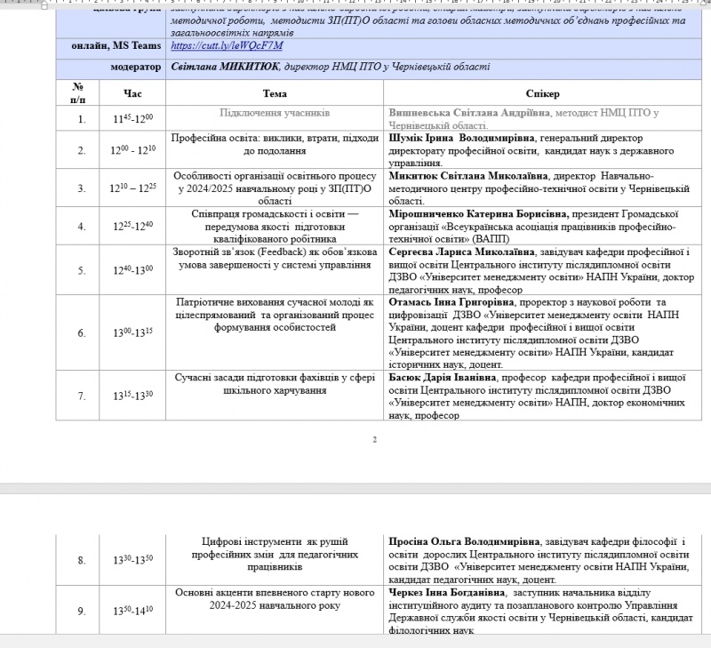 УЧАСТЬ ЗАВІДУВАЧА КАФЕДРИ ФІЛОСОФІЇ І ОСВІТИ ДОРОСЛИХ ЦІПО У РОБОТІ ОНЛАЙН-ПЛАТФОРМИ ДЛЯ ПЕДАГОГІЧНИХ ПРАЦІВНИКІВ ЗАКЛАДІВ ПРОФЕСІЙНОЇ (ПРОФЕСІЙНО-ТЕХНІЧНОЇ) ОСВІТИ ЧЕРНІВЕЦЬКОЇ ОБЛАСТІ