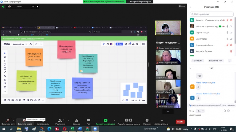 Так, для категорії слухачів: «Науково-педагогічні працівники університетів, академій, інститутів з менеджменту освіти та лідерства» передбачено на ІІ етапі навчання (27.04–14.11.2020 року) проведено професором кафедри менеджменту освіти та права Центрального інституту післядипломної освіти ДЗВО «Університет менеджменту освіти» НАПН України В. В. Супруном семінарське заняття за темою « Гендерно-орієнтоване бюджетування освіти в Україні» (додаток).