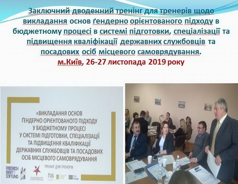 Передбачено також розгляд компонентів ґендерно орієнтованого бюджетування при опануванні слухачами наступних дисциплін курсів підвищення кваліфікації: