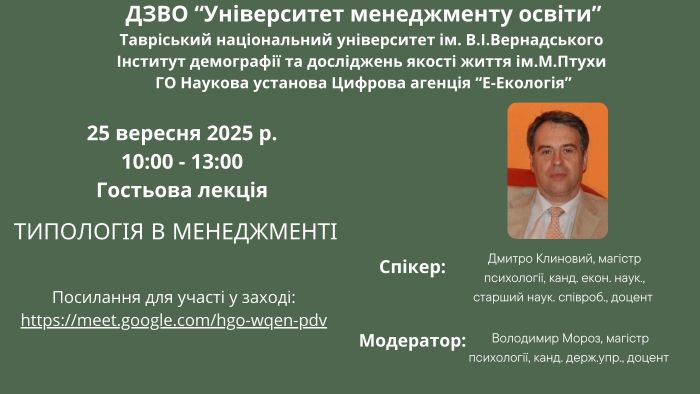 ГОСТЬОВА ЛЕКЦІЯ ДОЦЕНТА ДМИТРА КЛИНОВОГО НА ТЕМУ «ТИПОЛОГІЯ В МЕНЕДЖМЕНТІ»