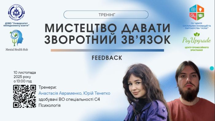 Запрошуємо на тренінг «Мистецтво давати зворотний зв’язок / feedback», щовідбудеться 10 листопада 2025 року о 13:00.