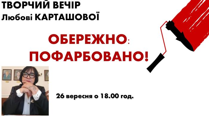 ЗАПРОШУЄМО НА ТВОРЧИЙ ВЕЧІР ПОЕЗІЇ ЛЮБОВІ КАРТАШОВОЇ