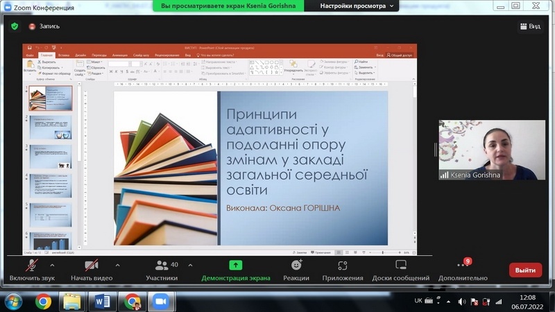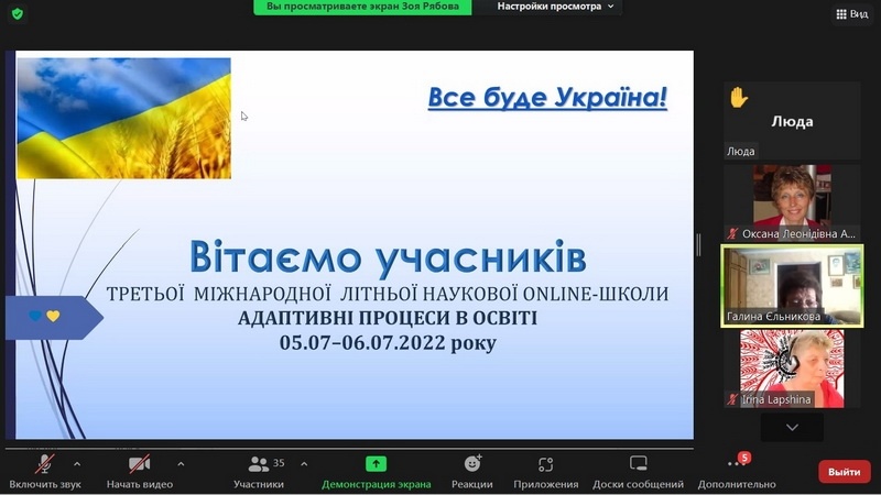 Як завжди дуже насичено, цікаво і продуктивно під головуванням Єльникової Галини Василівни 05.07–06.07.2022 року відпрацювала третя міжнародна літня наукова online-школа АДАПТИВНІ ПРОЦЕСИ В ОСВІТІ. Надзвичайно професійні виступи на секціях і практичні поради професіоналів.